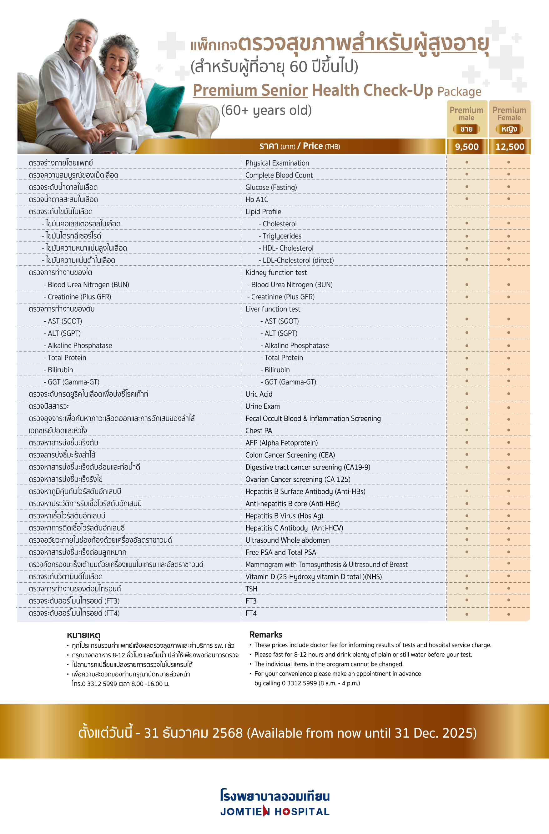 แพ็กเกจตรวจสุขภาพสำหรับผู้สูงอายุ (สำหรับผู้ที่อายุ 60 ปีขึ้นไป)