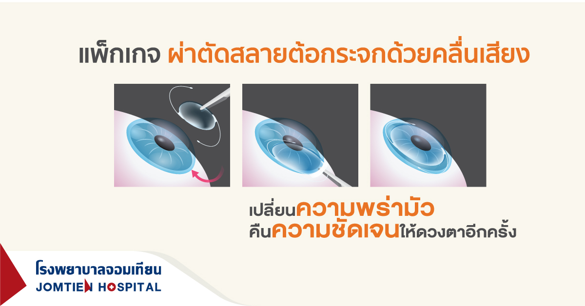 ต้อกระจก (Cataract) เป็นภาวะที่เลนส์ตามีความขุ่นมัว จากปกติที่มีความใส ทำให้แสงผ่านเข้าดวงตาลดลง บดบังทำให้ไม่สามารถทำให้จอประสาทตารับภาพได้ชัดเจน ทำให้การมองเห็นลดลงเรื่อย ๆ ส่วนใหญ่พบในผู้สูงวัย อายุมากกว่า 50 – 60ปีขึ้นไป แต่สามารถเกิดขึ้นได้ทุกวัยตั้งแต่วัยเด็กหรือเป็นแต่กำเนิด หรือกลุ่มคนอายุน้อย หากมีการใช้สเตียรอยด์ติดต่อกันเป็นเวลานาน อุบัติเหตุทางตา หรือโรคที่มีการอักเสบในตา เป็นต้น อาการที่สังเกตได้คือ ตาจะค่อย ๆ พร่ามัวลงเหมือนมีหมอกหรือฝ้าบัง เห็นภาพซ้อน เห็นแสงไฟกระจาย มองภาพเป็นสีเหลืองหรือสีผิดเพี้ยนไป อาจมีค่าสายตาเปลี่ยนแปลงรวดเร็ว เช่น สายตาสั้นมากขึ้น ต้องเปลี่ยนแว่นตาบ่อยผิดปกติ