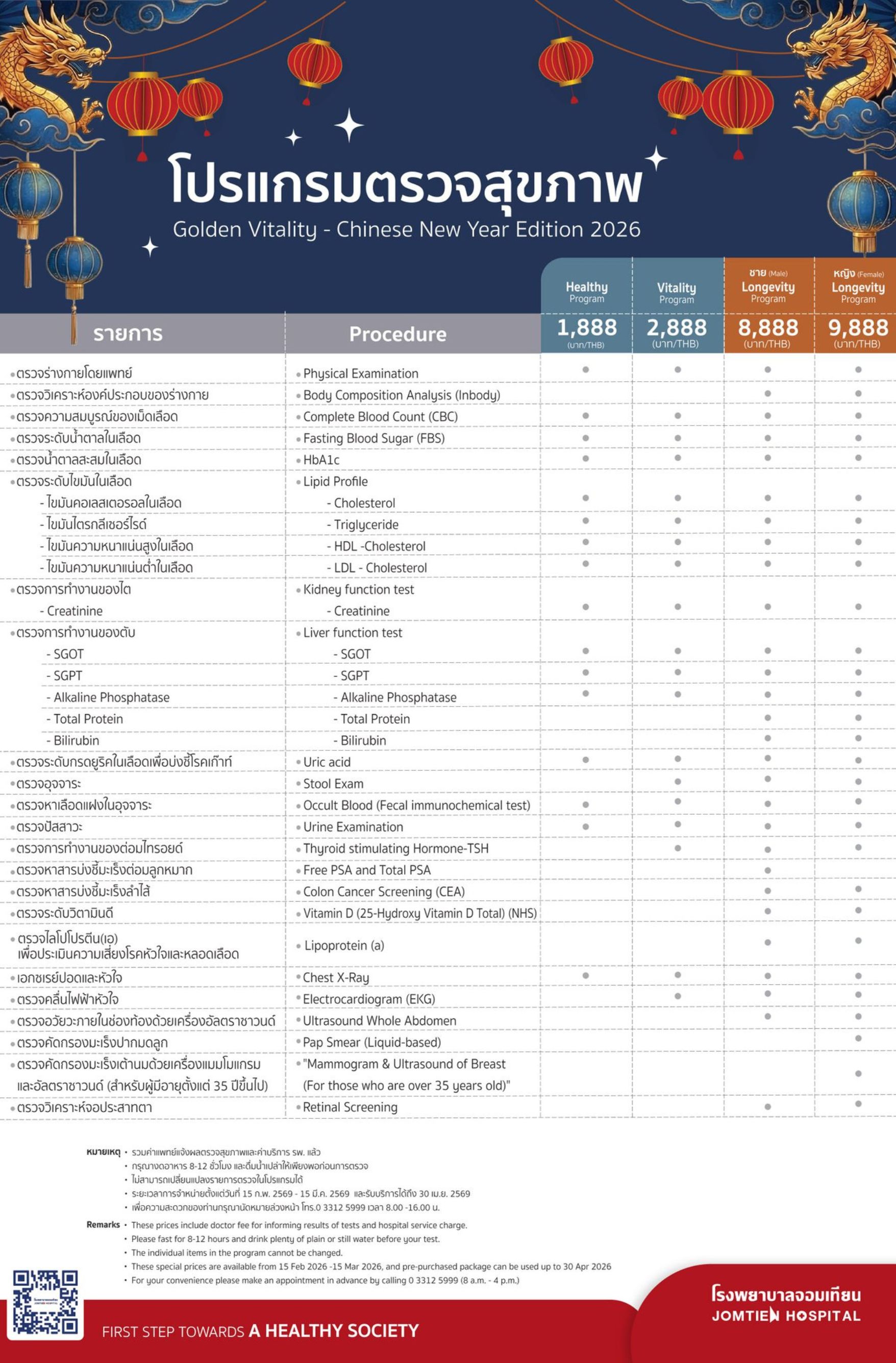 โปรแกรมตรวจสุขภาพ Golden Vitality Chinese New Year Editiion 2026
