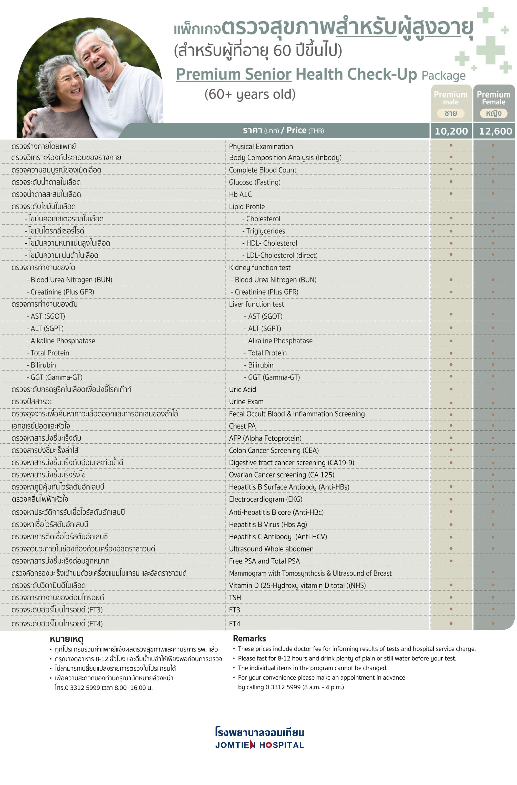 แพ็กเกจตรวจสุขภาพสำหรับผู้สูงอายุ (สำหรับผู้ที่อายุ 60 ปีขึ้นไป)