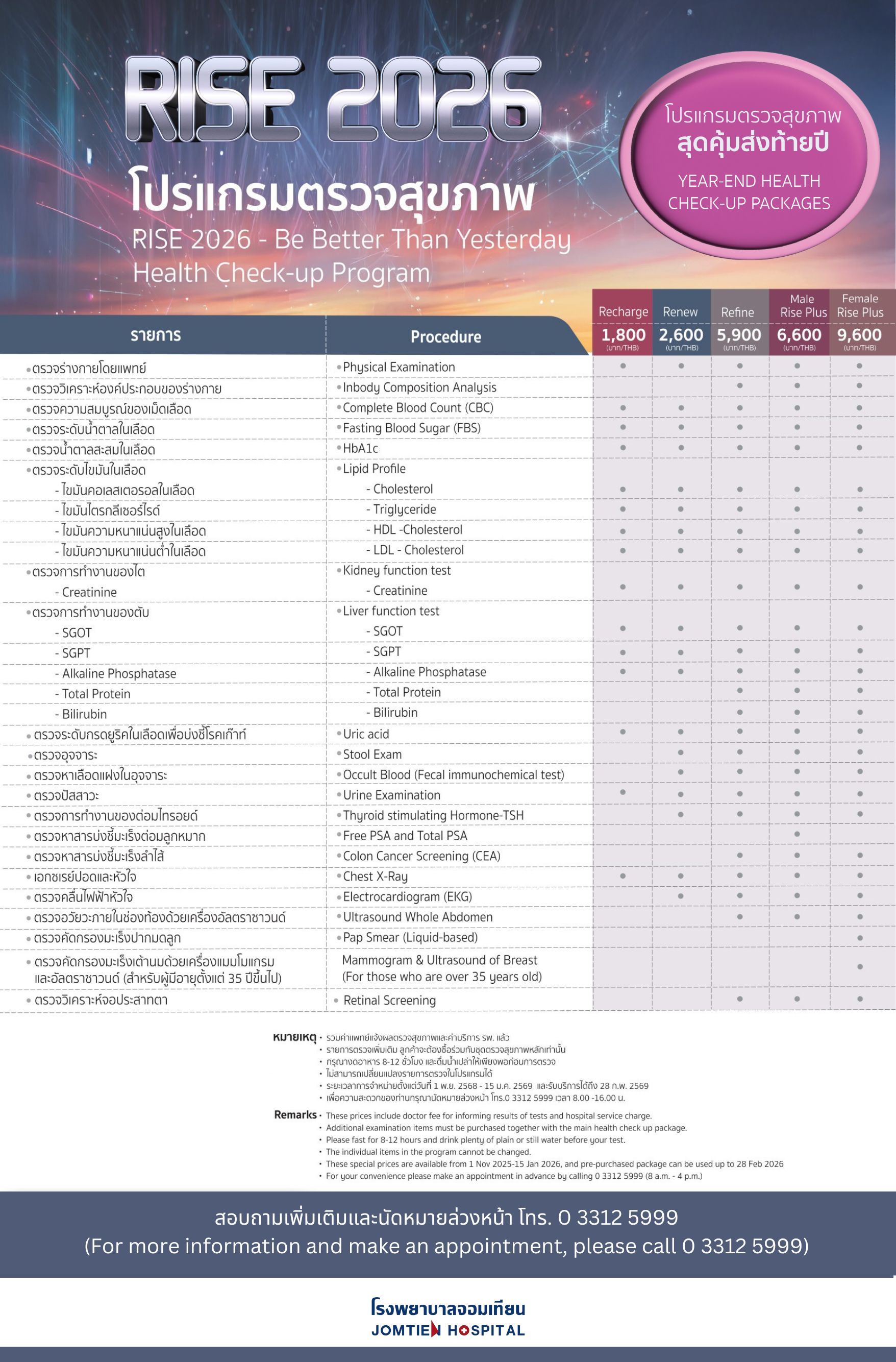 RISE 2026 แพ็กเกจตรวจสุขภาพวันนี้ เพื่อชีวิตที่ดีกว่าเมื่อวาน