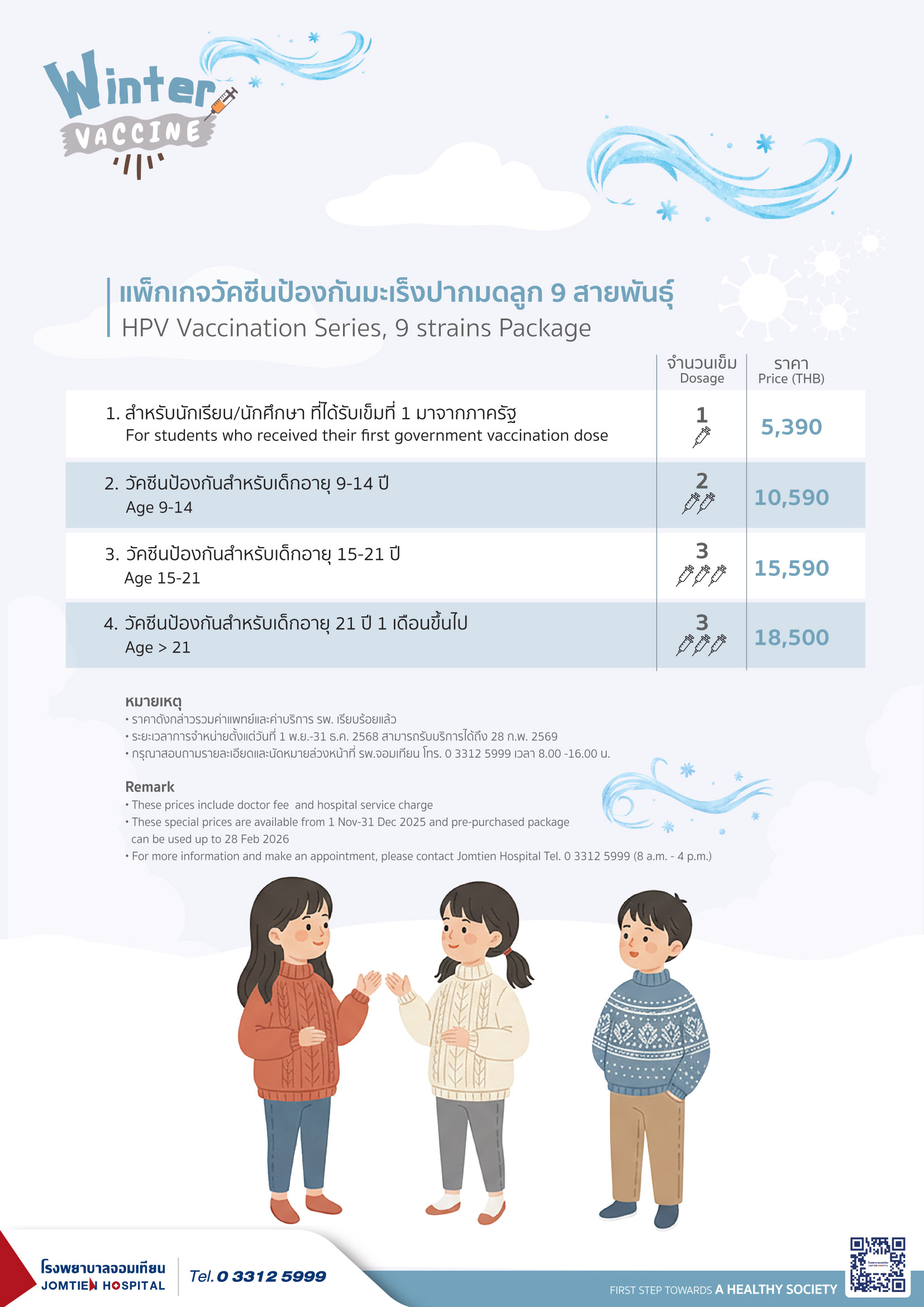วัคซีนป้องกันมะเร็งปากมดลูก 9 สายพันธุ์ >> สอบถามรายละเอียดเพิ่มเติม <<