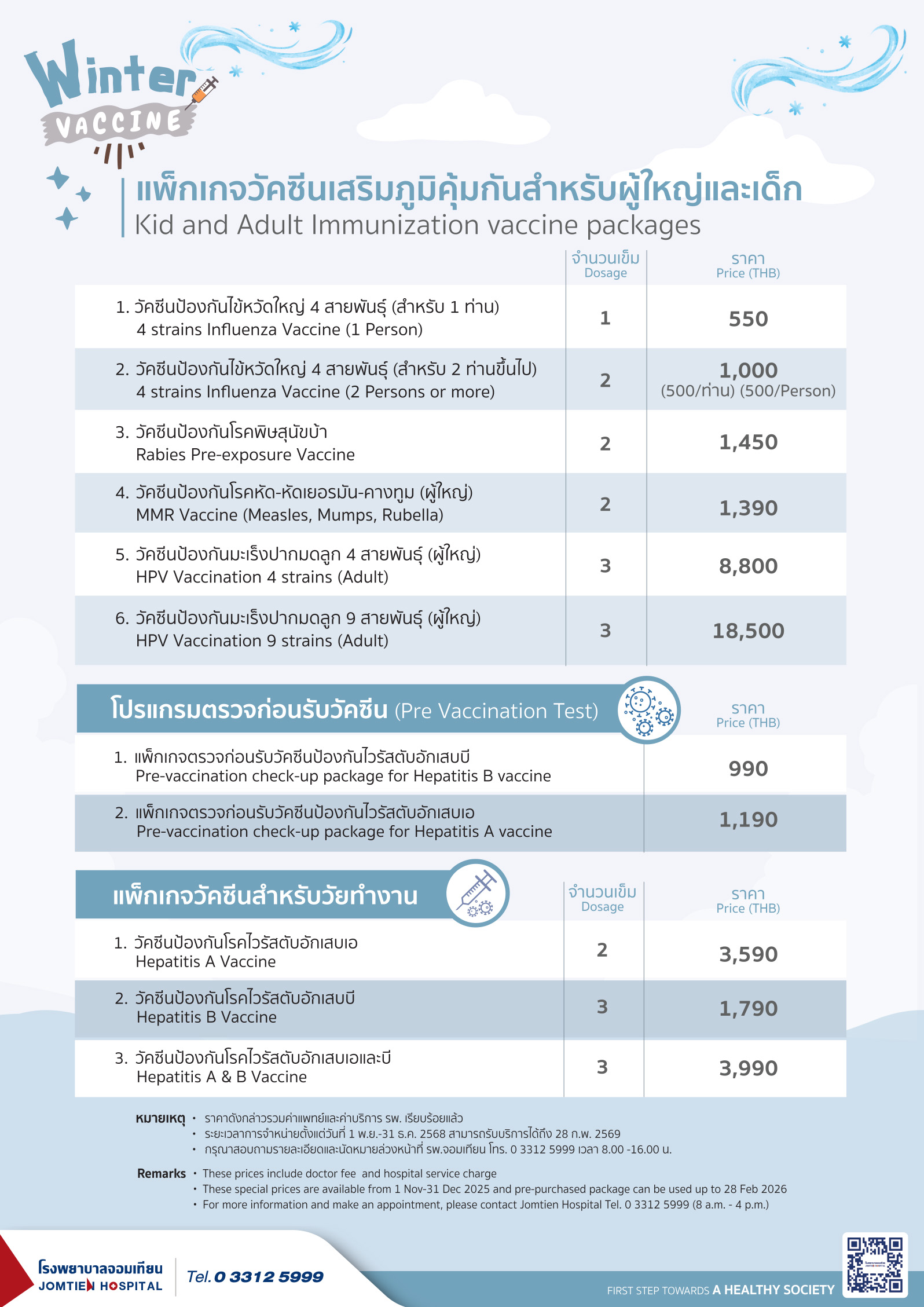 แพ็กเกจวัคซีนเสริมภูมิคุ้มกันสำหรับผู้ใหญ่และเด็ก >> สอบถามรายละเอียดเพิ่มเติม <<